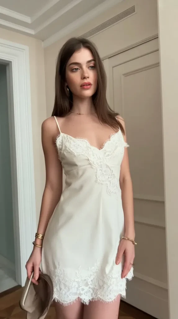This look feels gentle and pretty. A soft dress in a light color gives that dreamy European summer vibe. It looks perfect for a slow morning walk, a lunch date, or an evening by the sea.