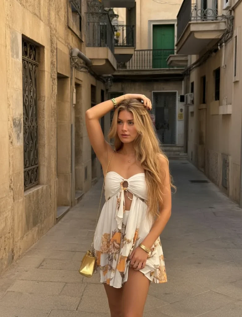For people who want euro summer outfits with a bit more charm, this is a beautiful option. It feels fresh, flattering, and perfect for sunny days and fun evening plans.