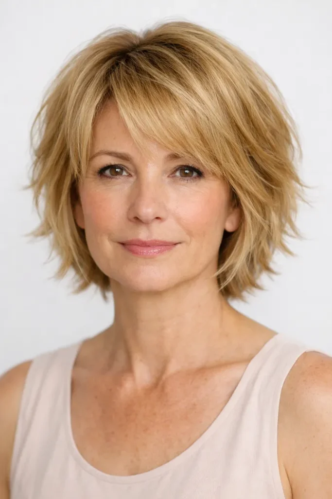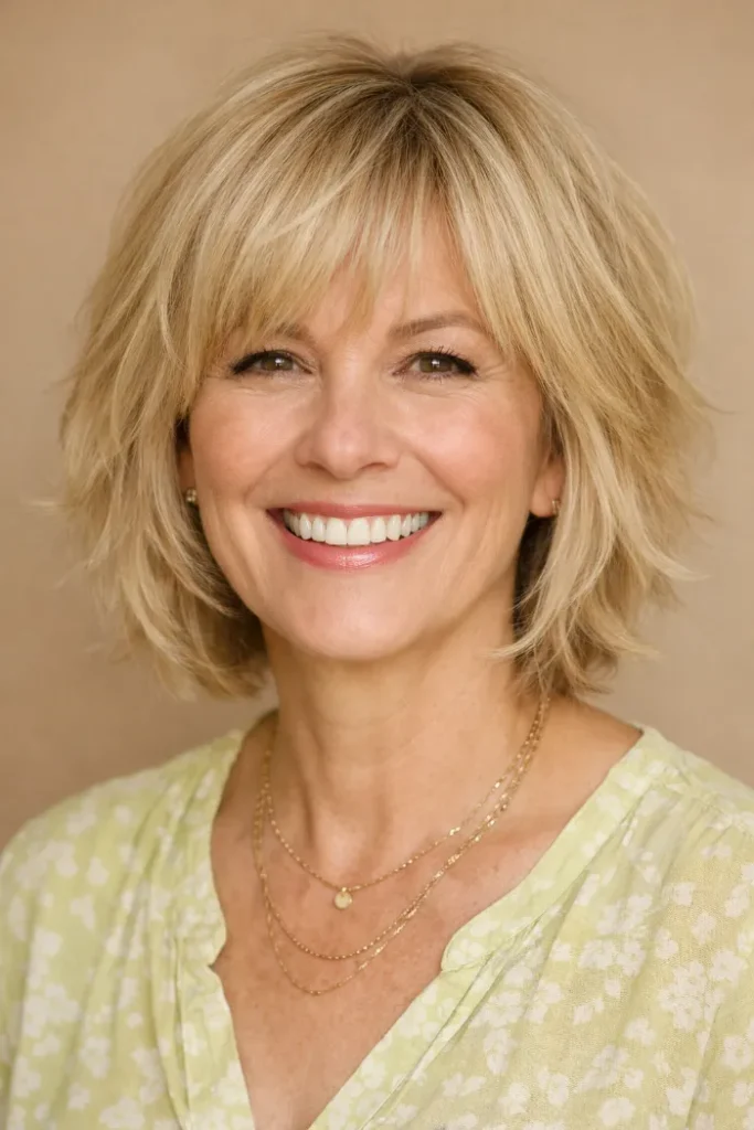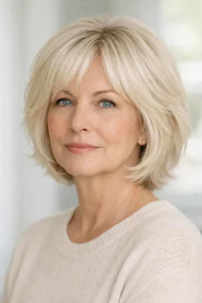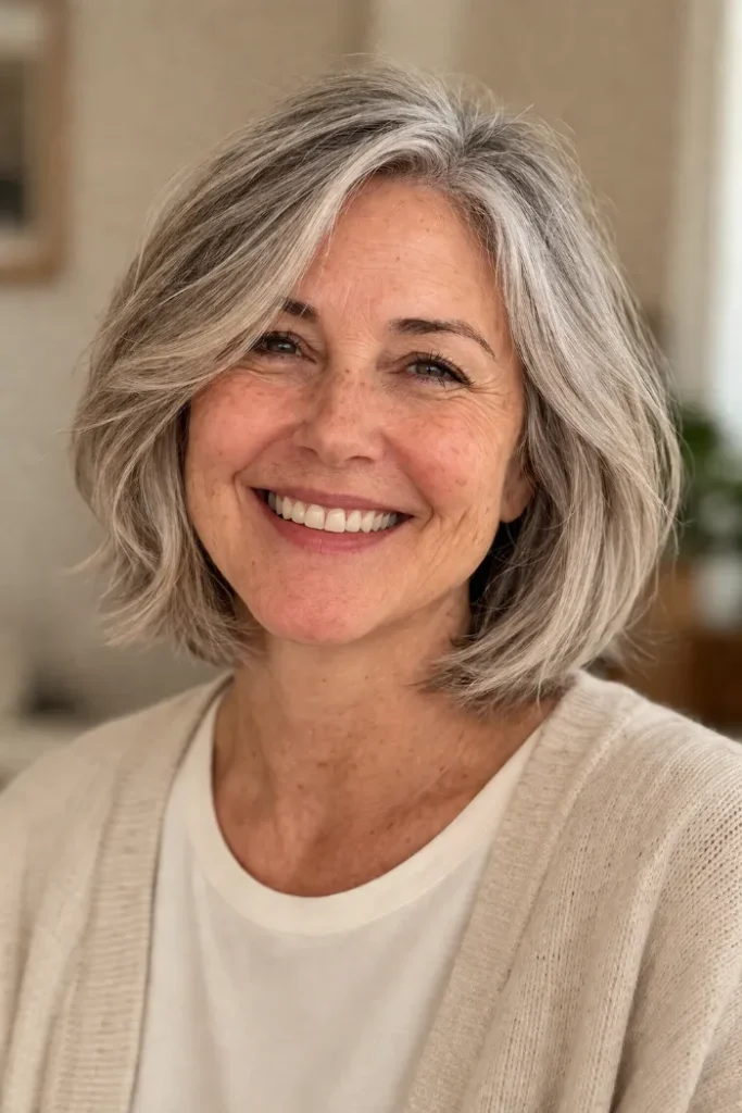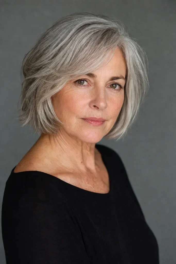 A layered bob can do a lot with very little effort. It can make your hair look fuller, soften your features, and give you a clean shape that still feels natural. That is why it stays such a smart choice for women over 60.