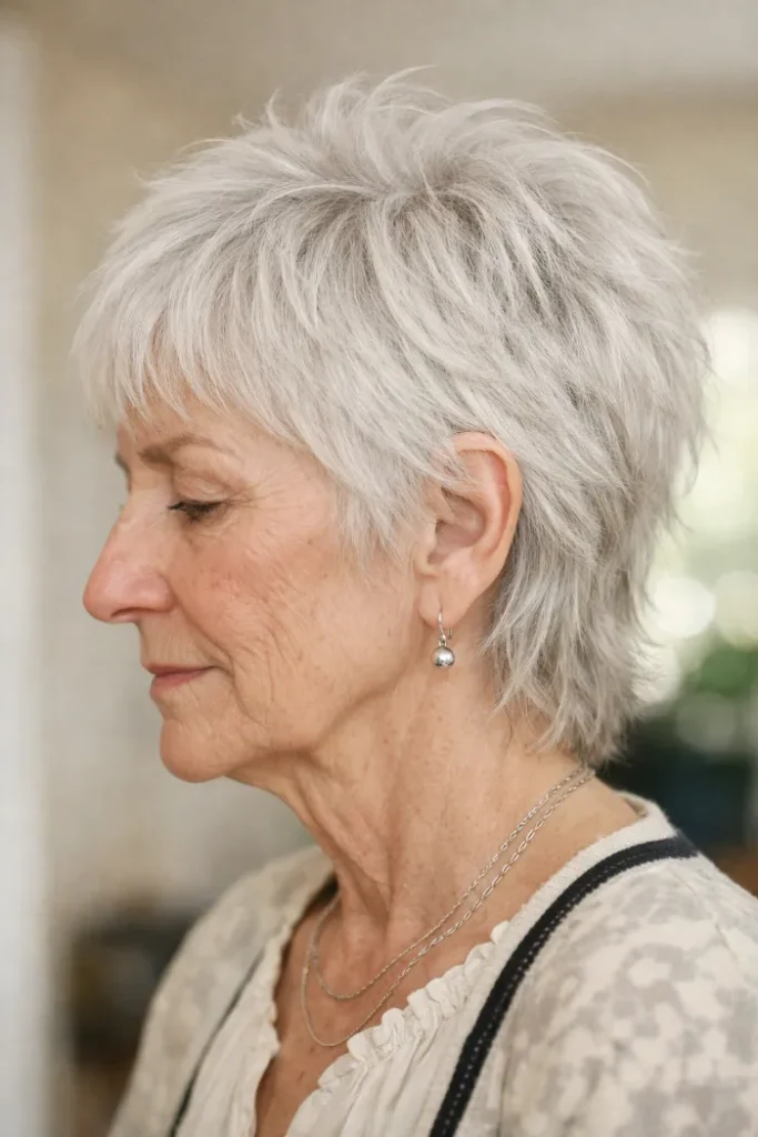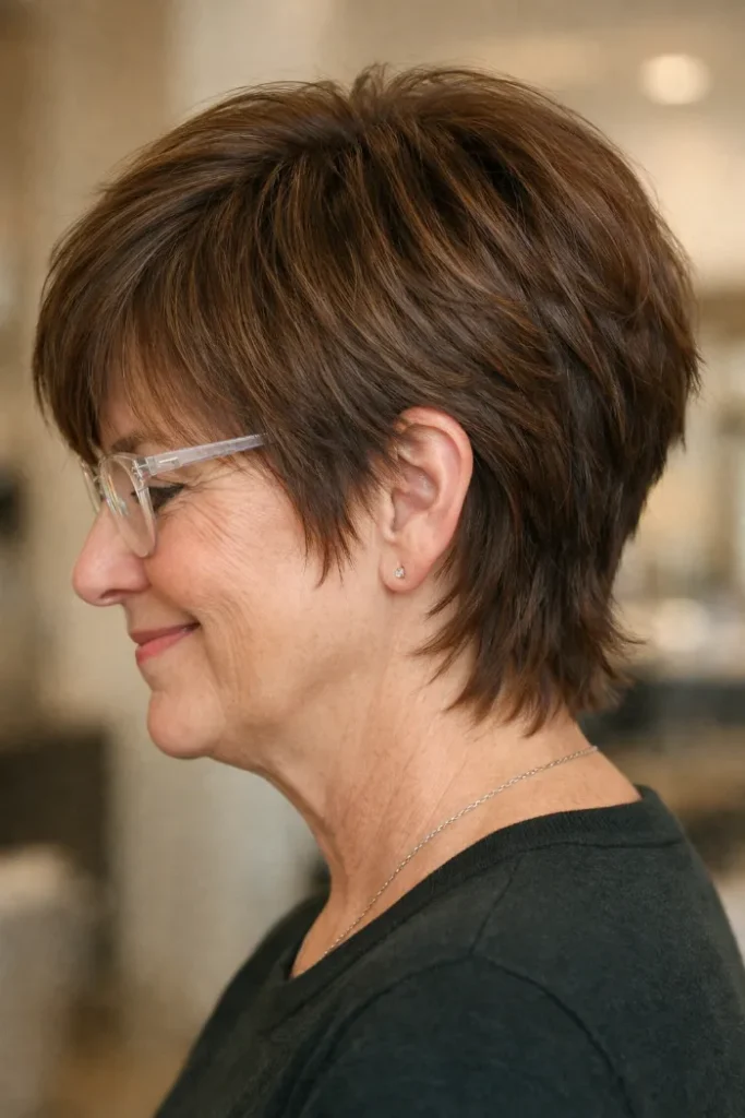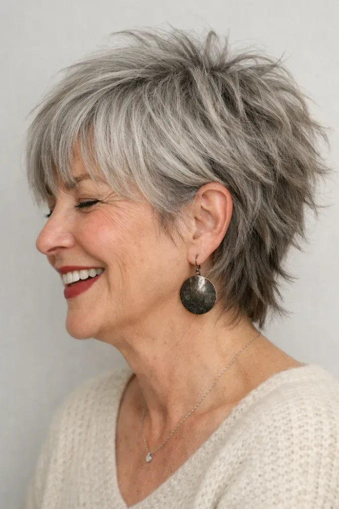 Short shag haircuts can be a great choice after 60 because they add shape, lift, and movement without looking stiff. They can be soft and neat, or a little messy and textured, depending on your style.