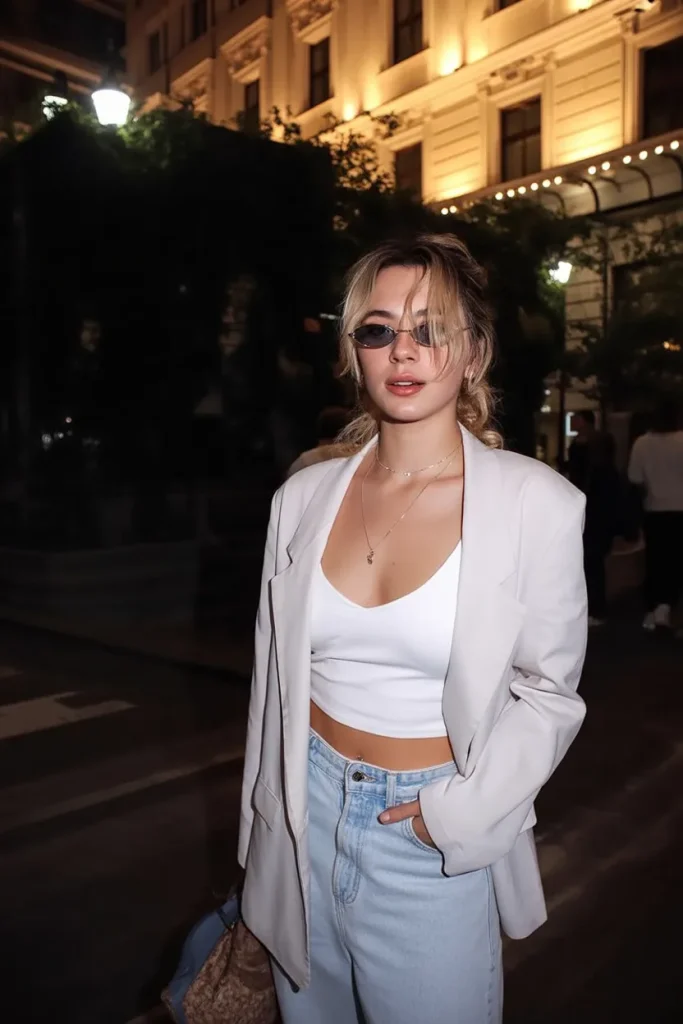 A light blazer instantly makes denim feel more dressed up. It’s perfect for spring nights when the air gets cooler.