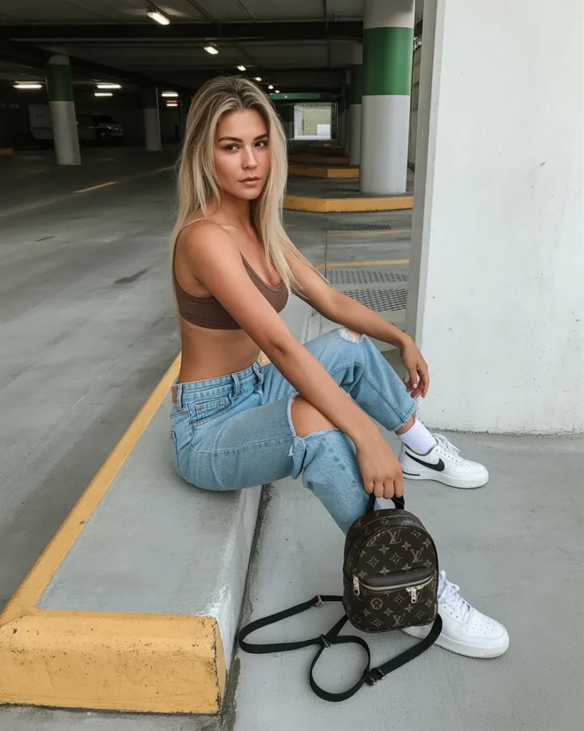 This outfit feels sporty, youthful, and relaxed. It’s great for days when comfort comes first, but you still want to look finished.