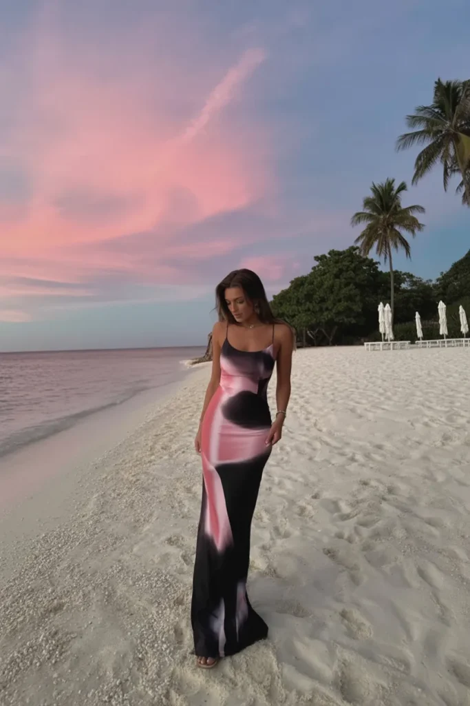 A long sunset maxi dress feels soft, flowing, and elegant. The colors bring a warm and dreamy look that feels perfect for evening walks, beach dinners, or summer holidays. It creates a calm and beautiful style with very little effort.