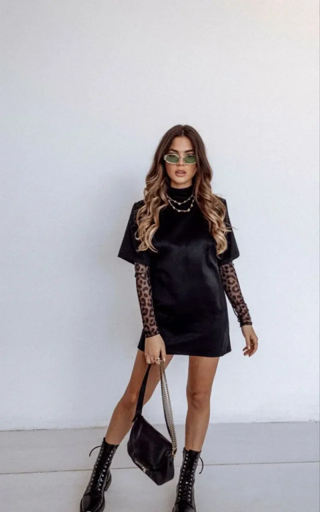 A crisp shirt layered under a fitted leather mini dress feels polished and fashion-forward. The contrast between cotton and leather creates depth without needing extra details.