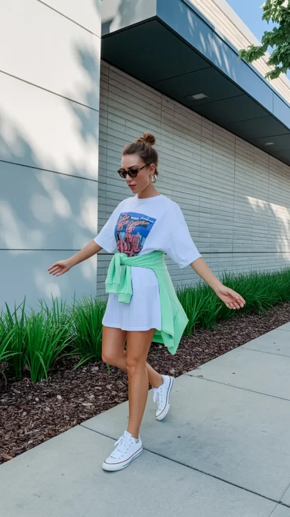 White sneakers keep the outfit clean and balanced. If you want a confident street-style vibe, this is one of the strongest Summer Outfits with Sneakers on the list.