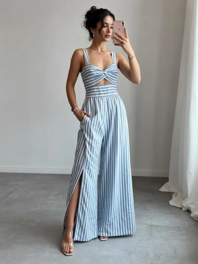 You can dress it up with heels or keep it casual with flats. If you want summer romper outfits that always look “right,” this style is a safe winner.